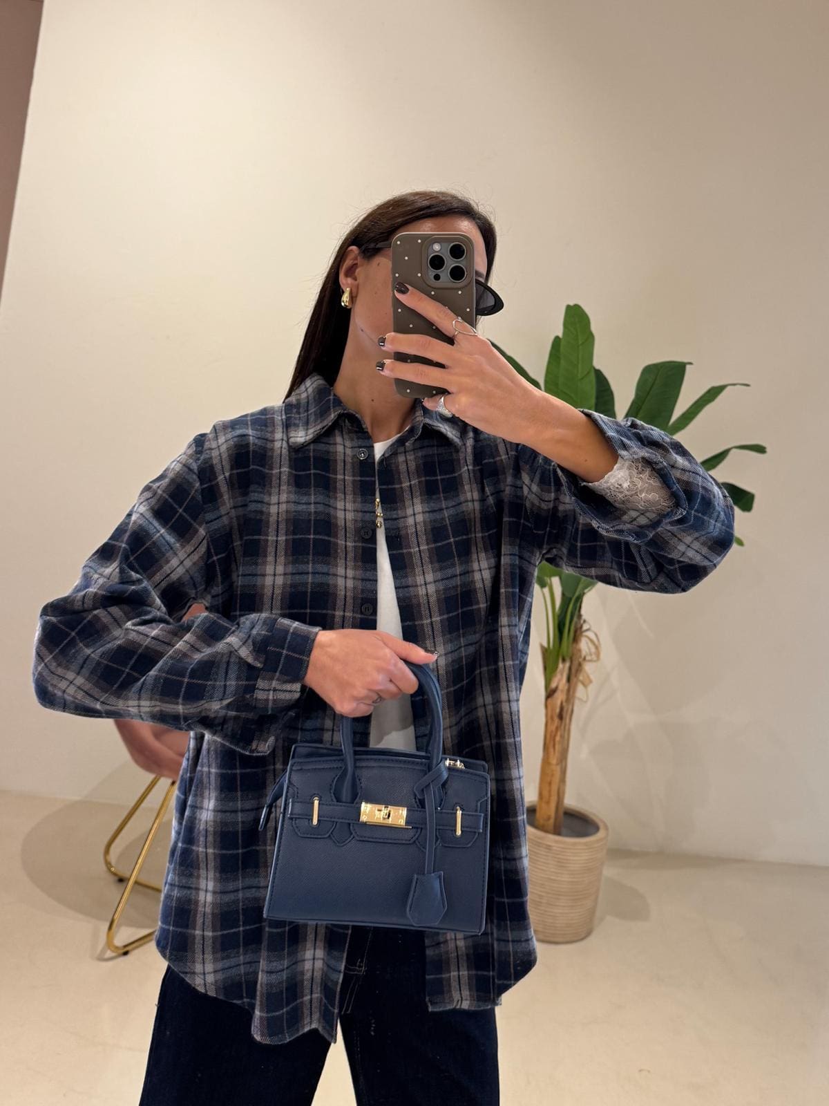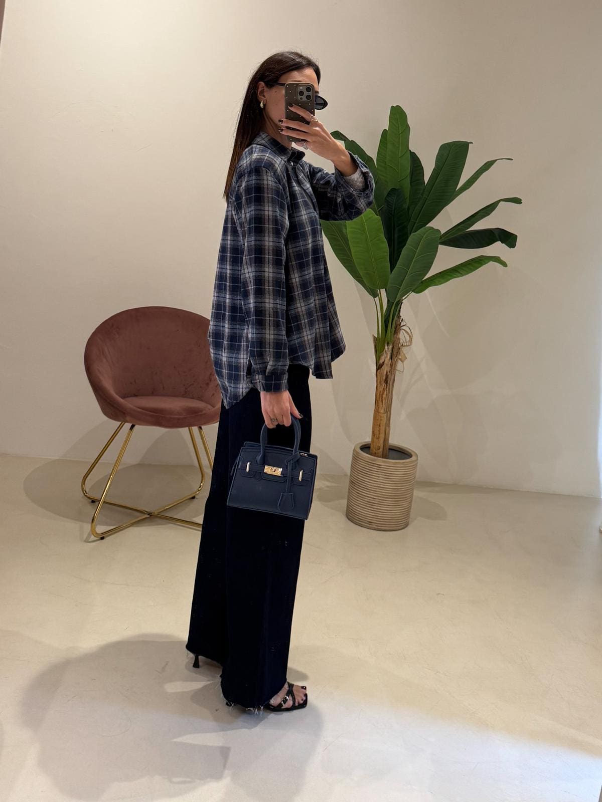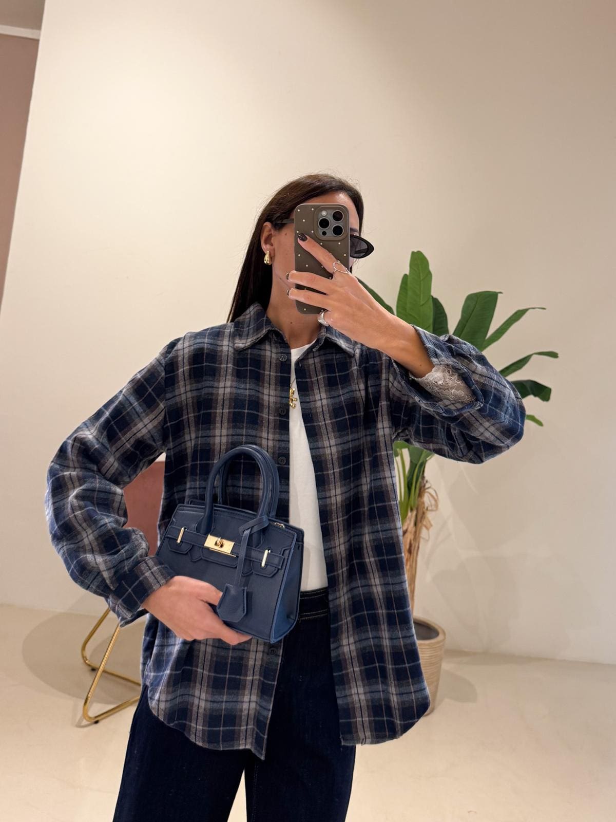 Camicia stampa check blue cotone caldo taglia unica chiusura bottone a vista