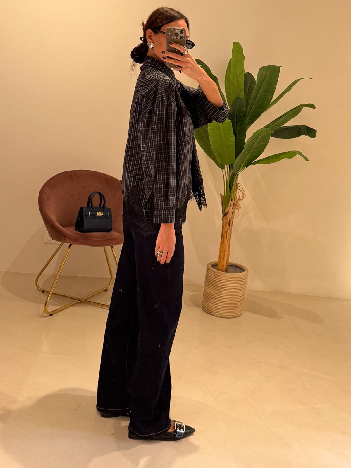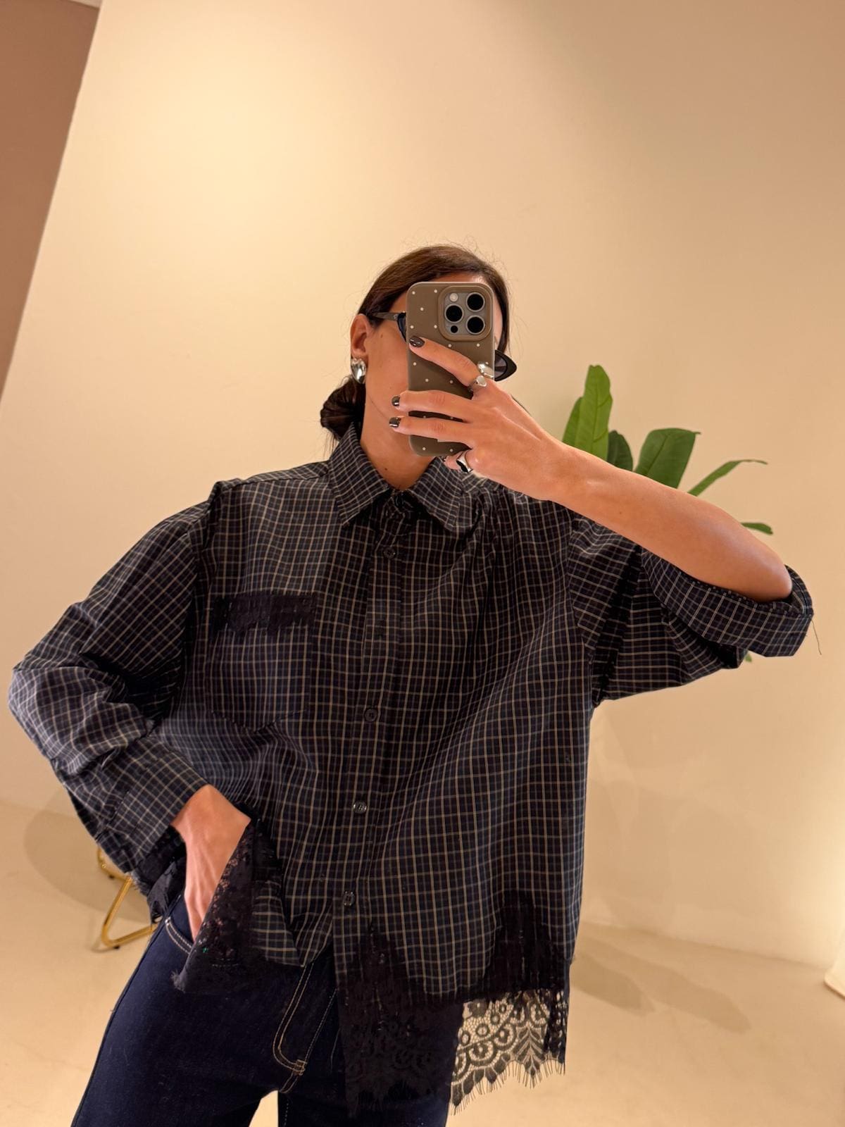 Camicia check e Pizzo Composizione:100% cotone Gioco di colore Verde bosco & pizzo nero