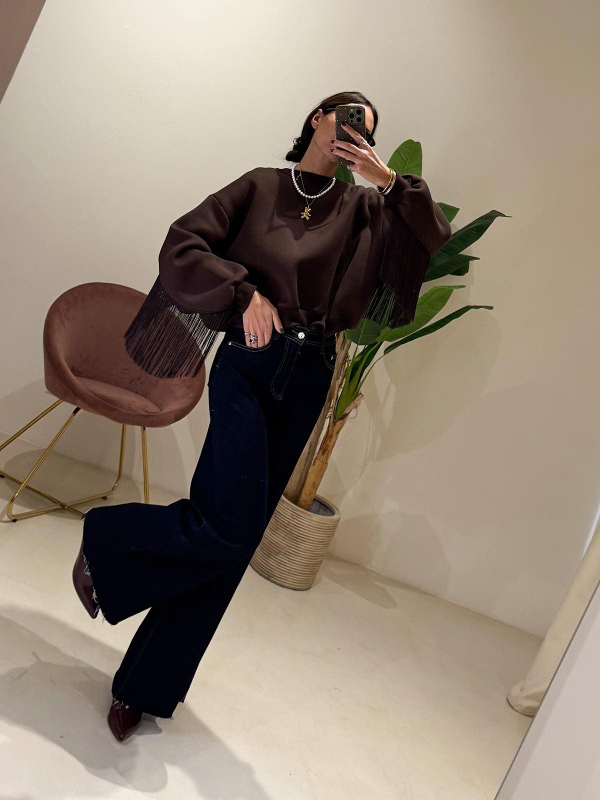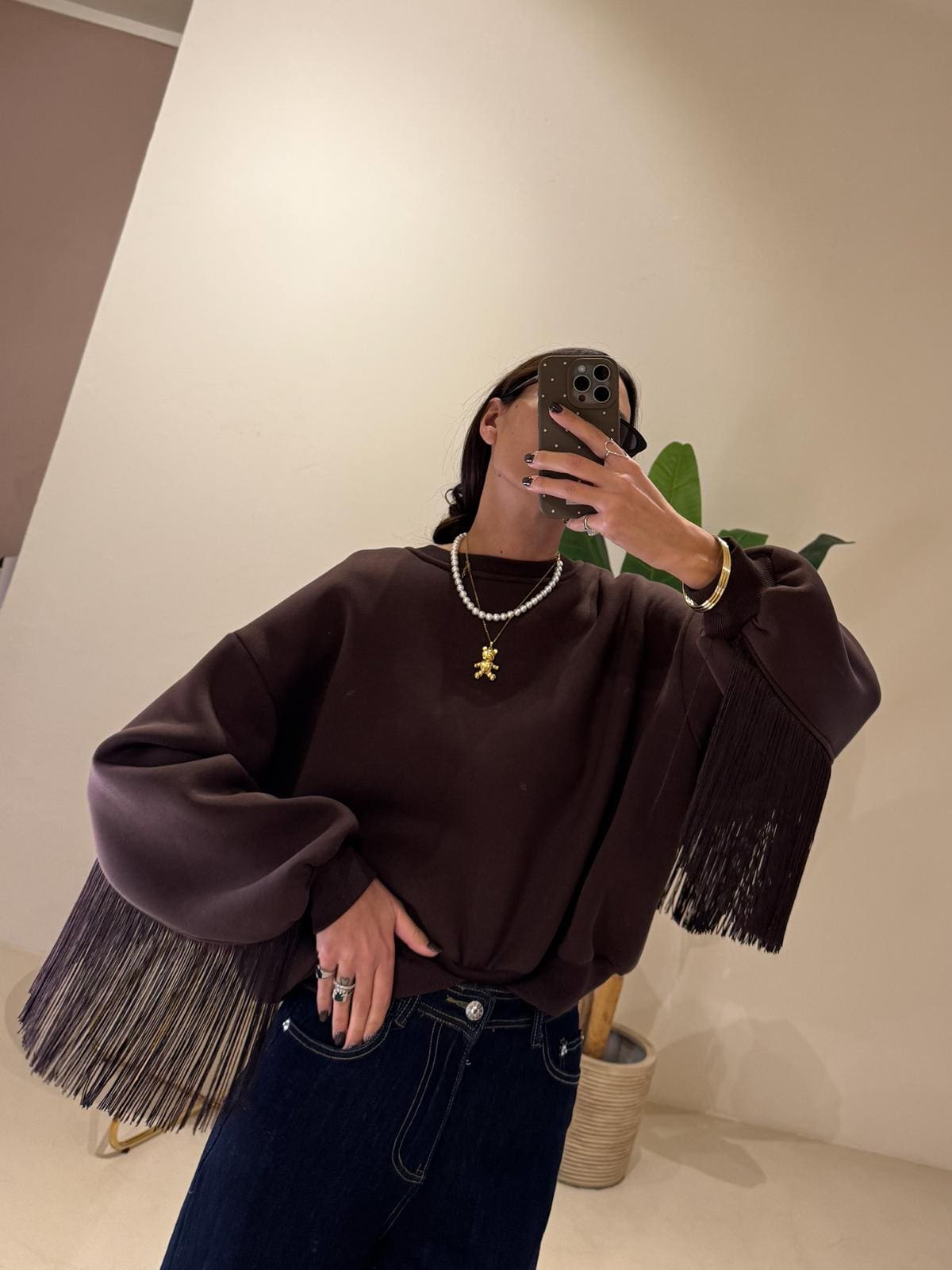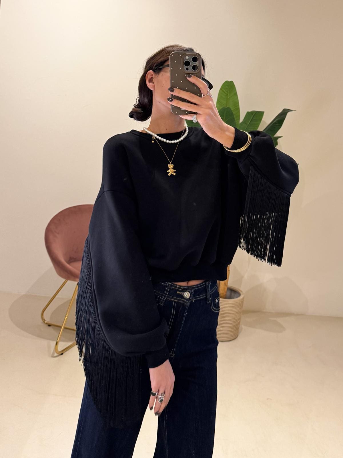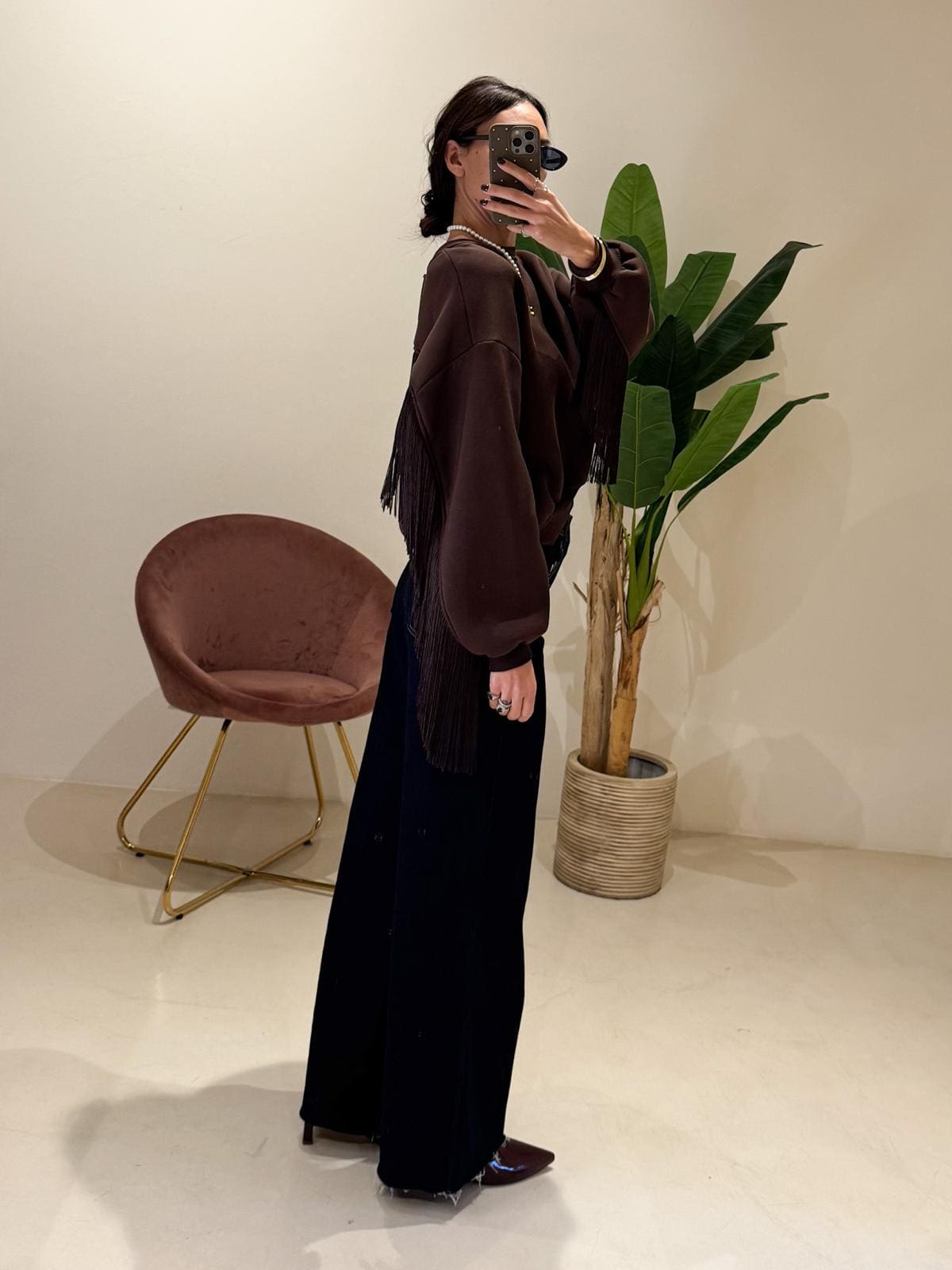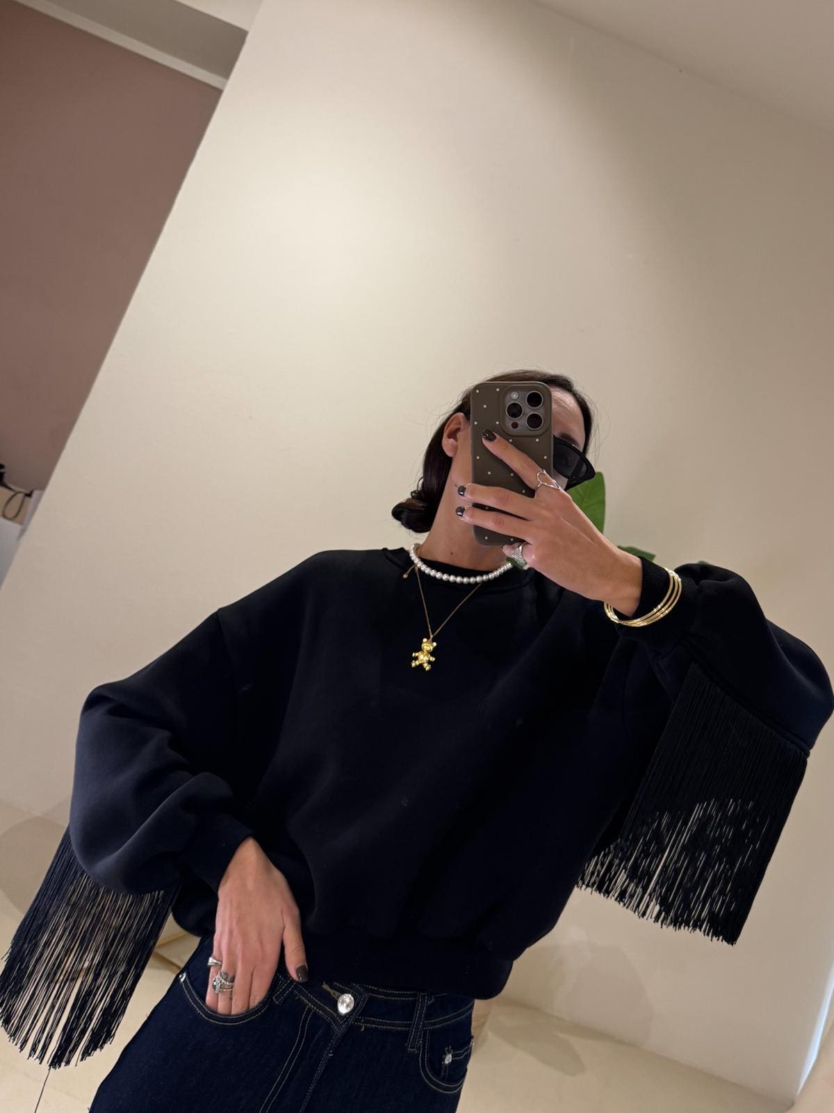 Felpa Frangiata Veste fino alla L Felpata all’ interno Moro Nero Composizione: cotone/polyestere/elasthan
