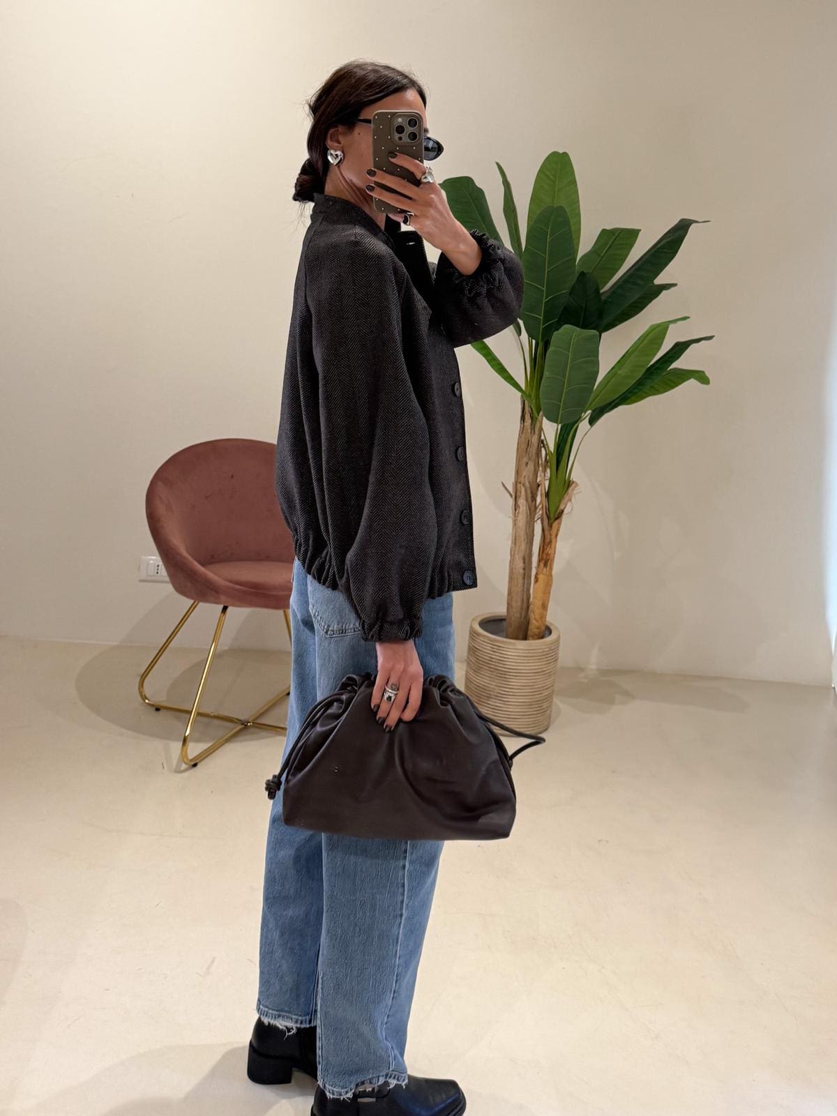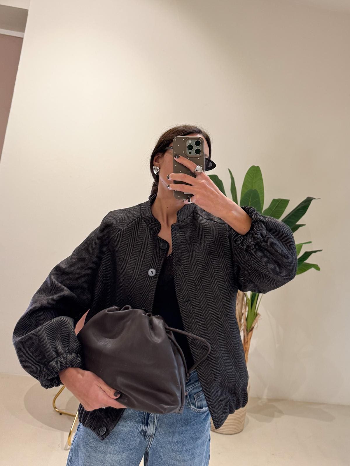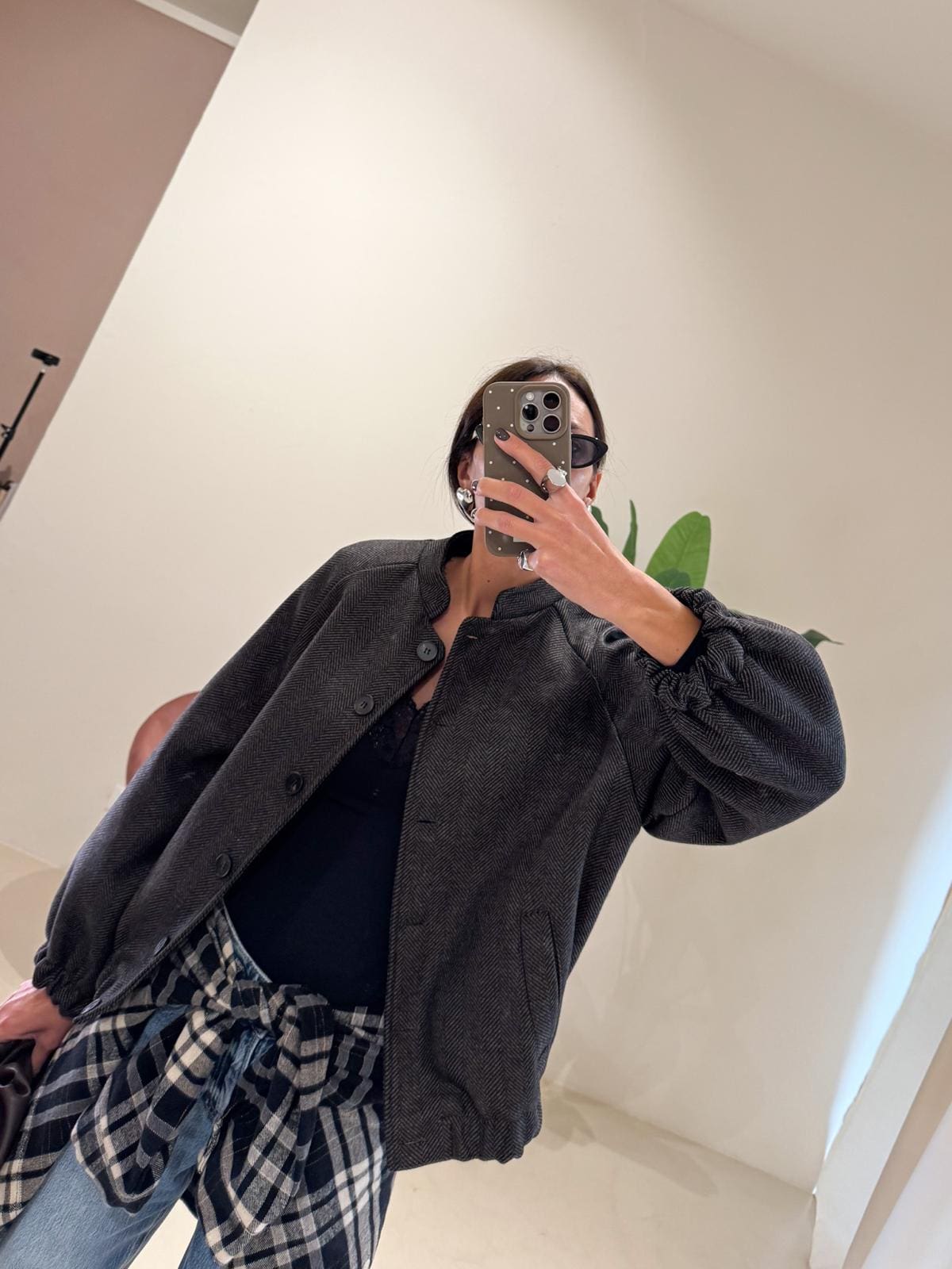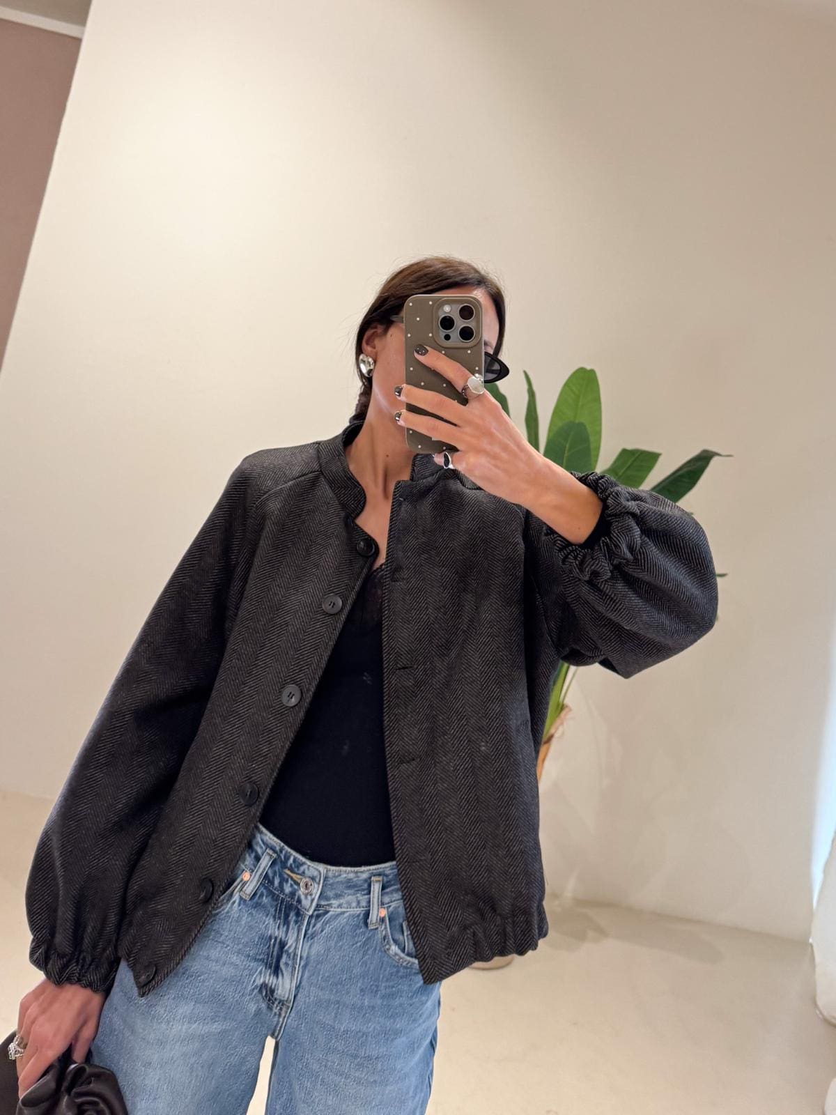 Bomber spigato taglia unica fantasia spigato grigio/nero chiusura bottone composizione: lana 45%, 30% poliammide, 25% acrilico, 5% AF