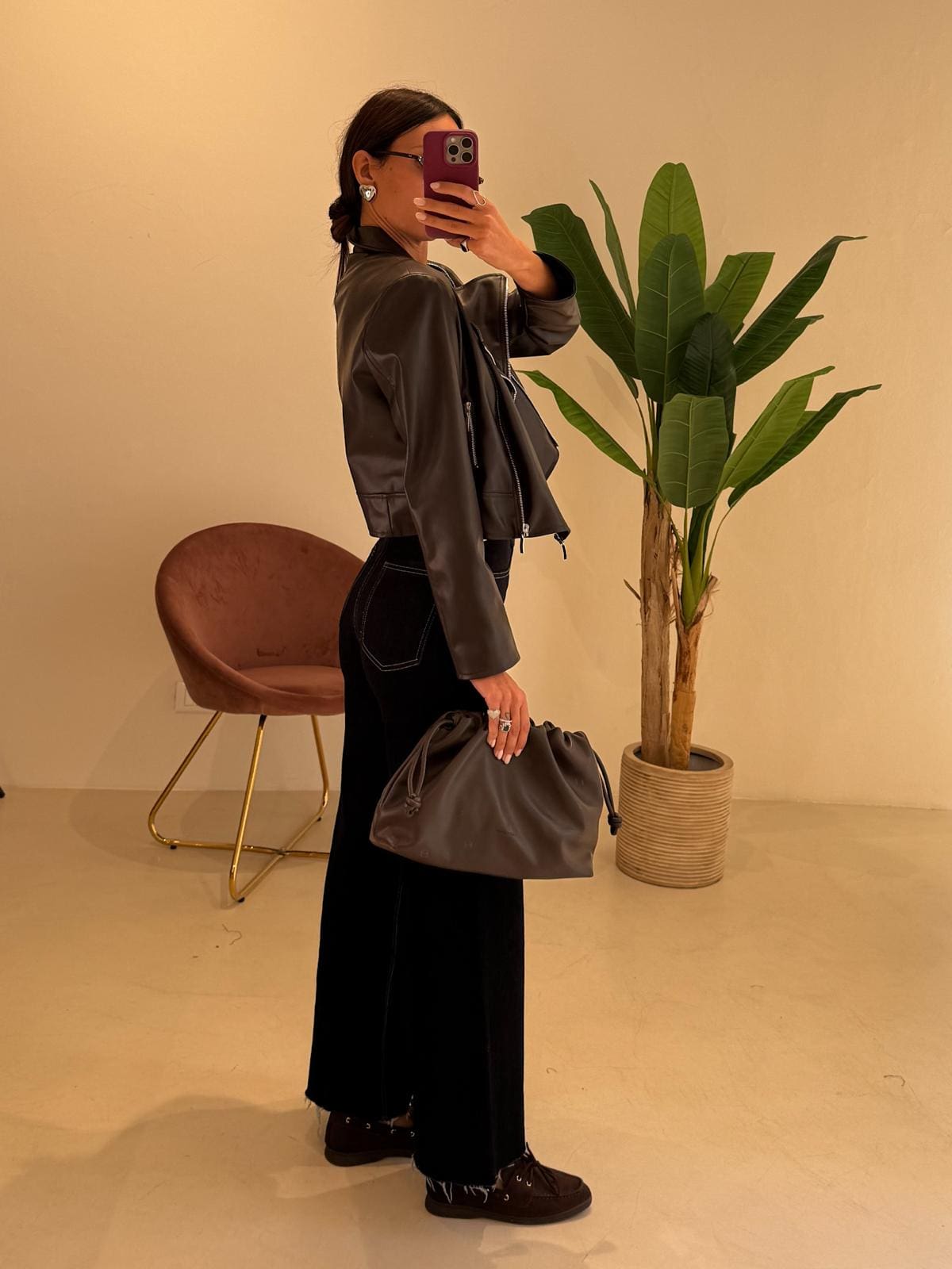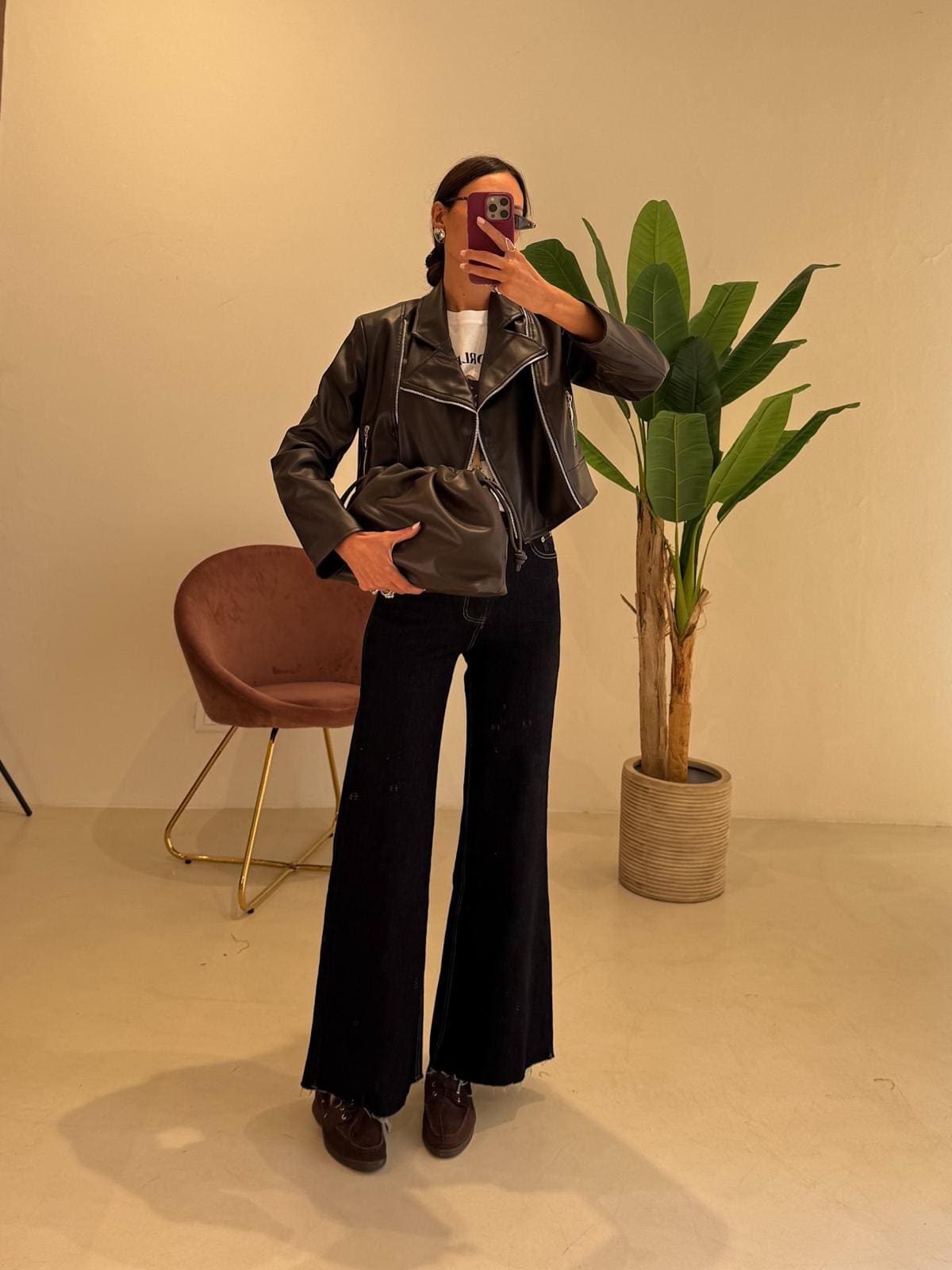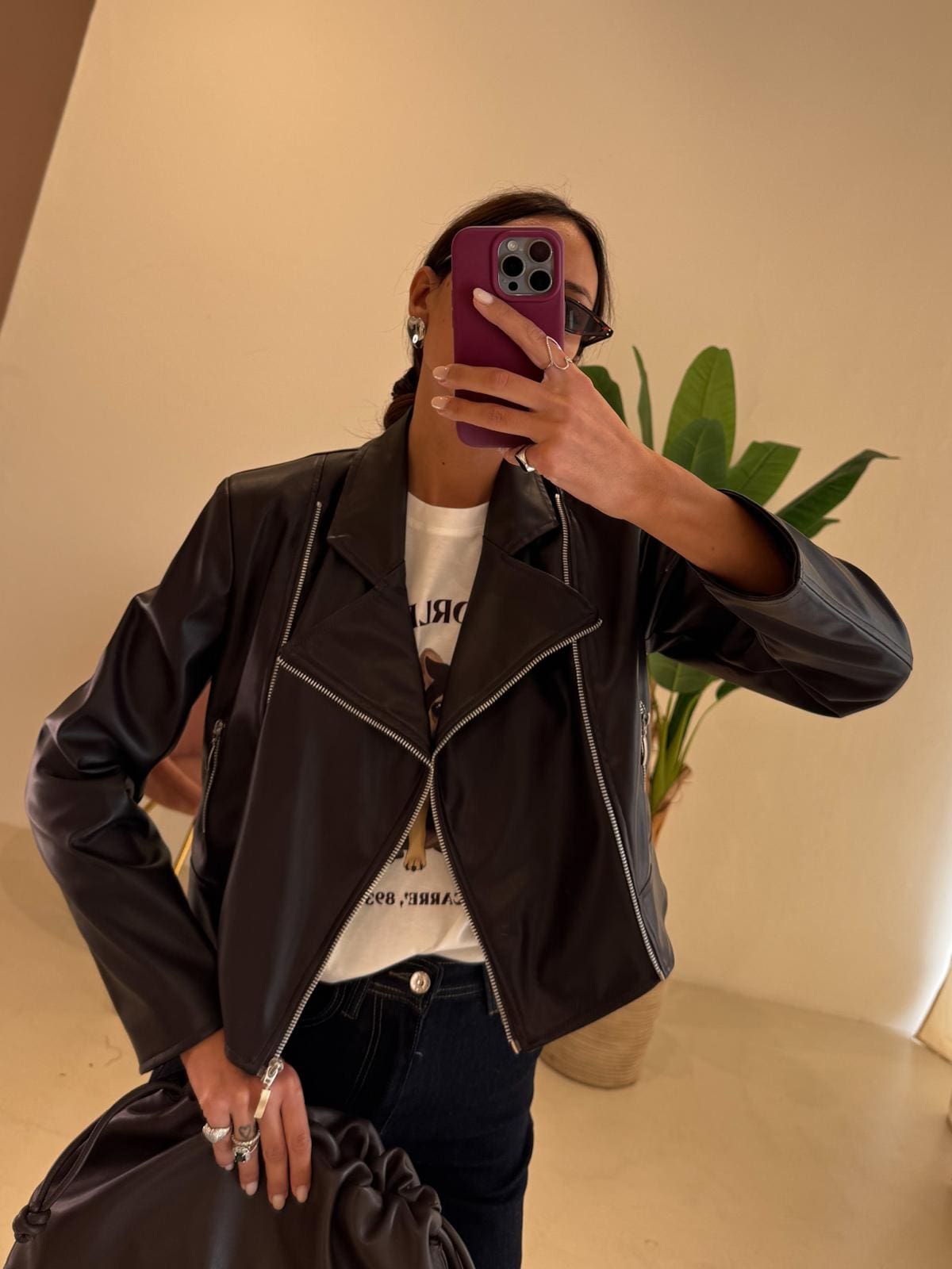 In ecopelle super morbida veste la taglia che avete, ma se volete ottenere un Fit piu Morbido consiglio la taglia sopra SOFIA H 173CM INDOSSA TAGLIA M