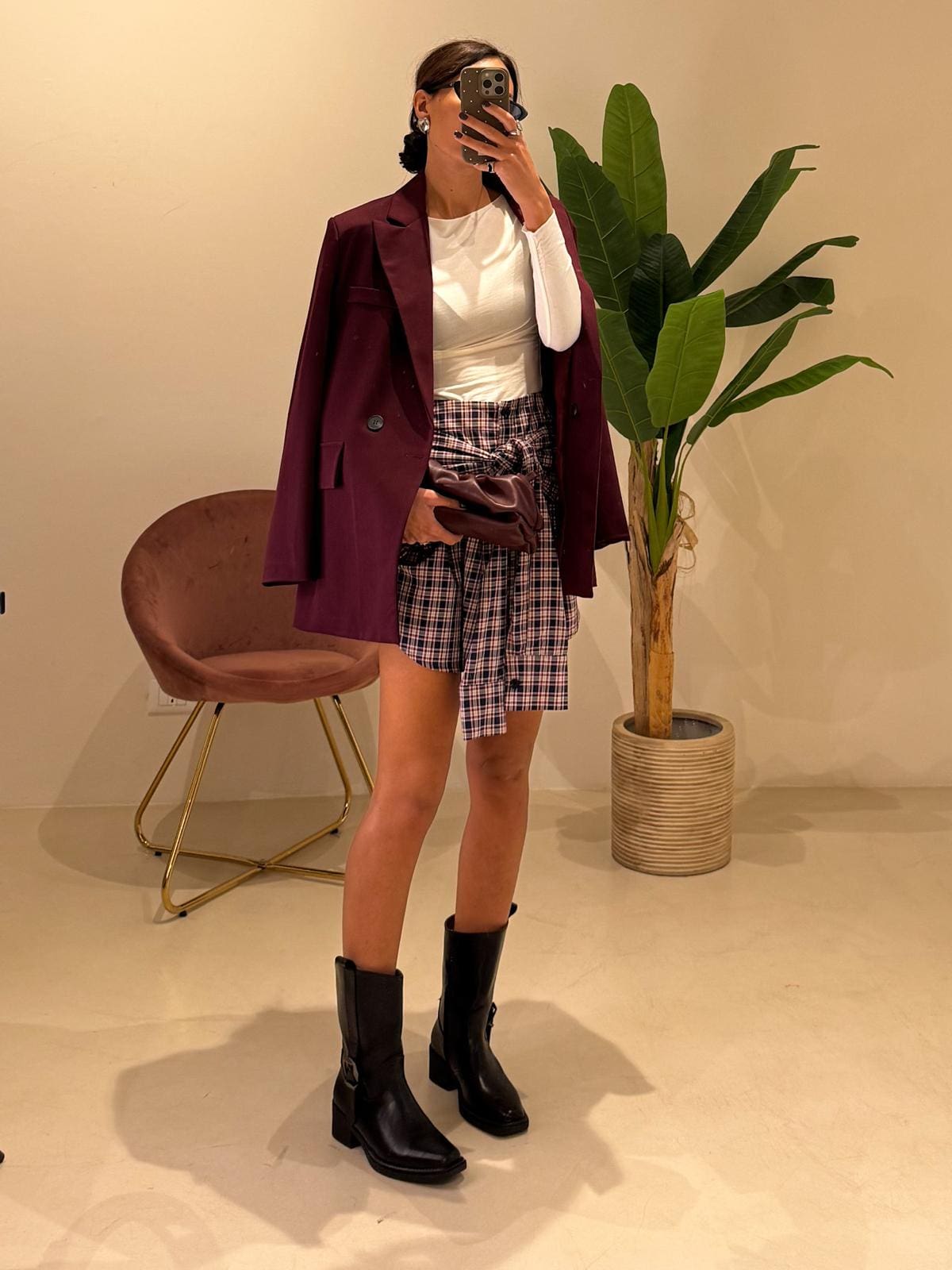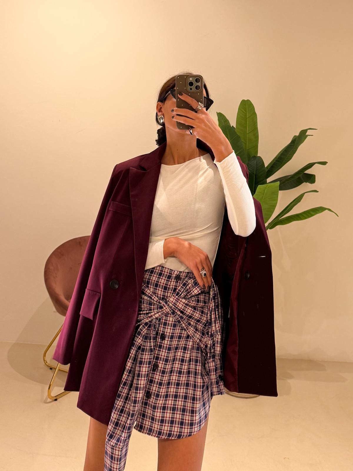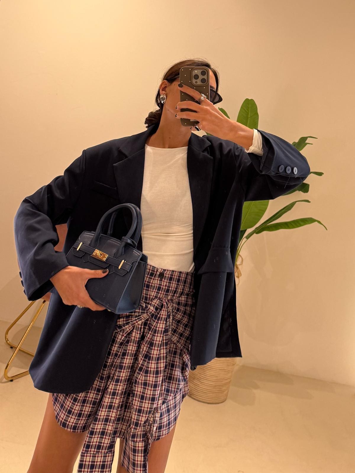 MINI STAMPA CHECK NODO TAGLIE DISPONIBILI S/M M/L Chiusura bottoncini Tela fissa Sofia H 173cm indossa taglia S/M Composizione:100% cotone