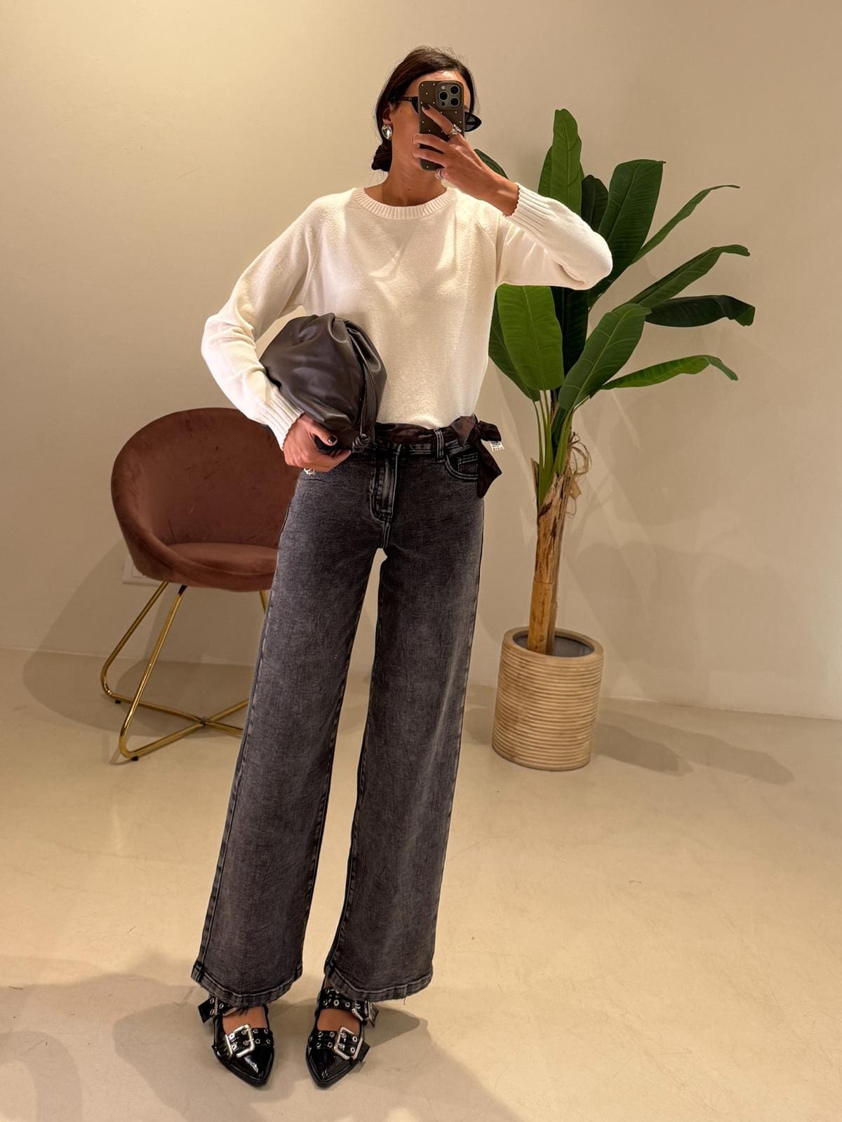 jeans Grey Cinta inclusa Maku Disponibile dalla XS alla L Colore grey Tela elasticizzata Veste regolare Sofia H 173 cm indosso taglia XS