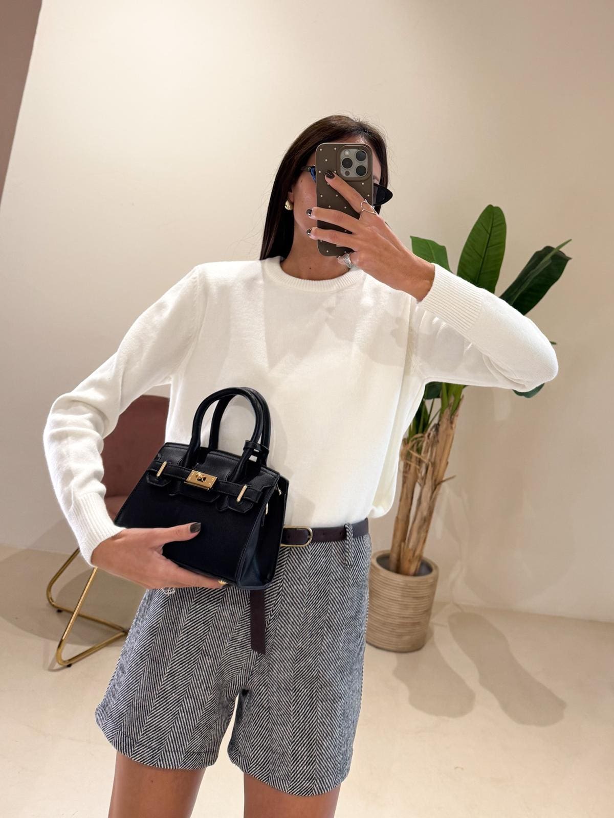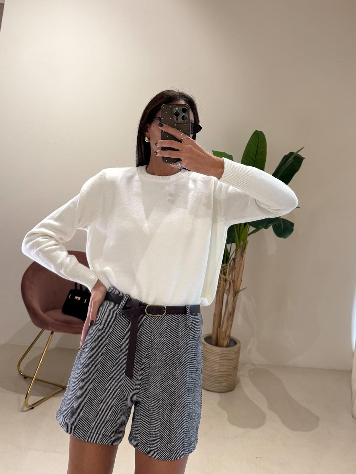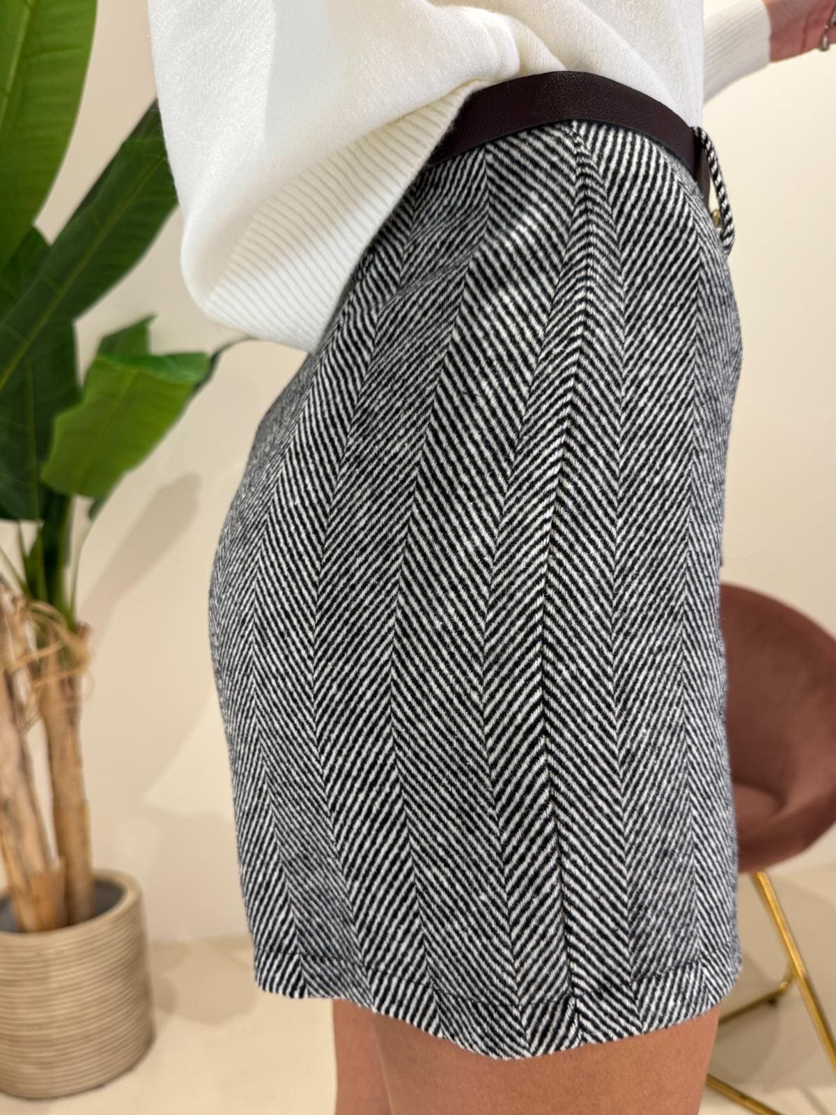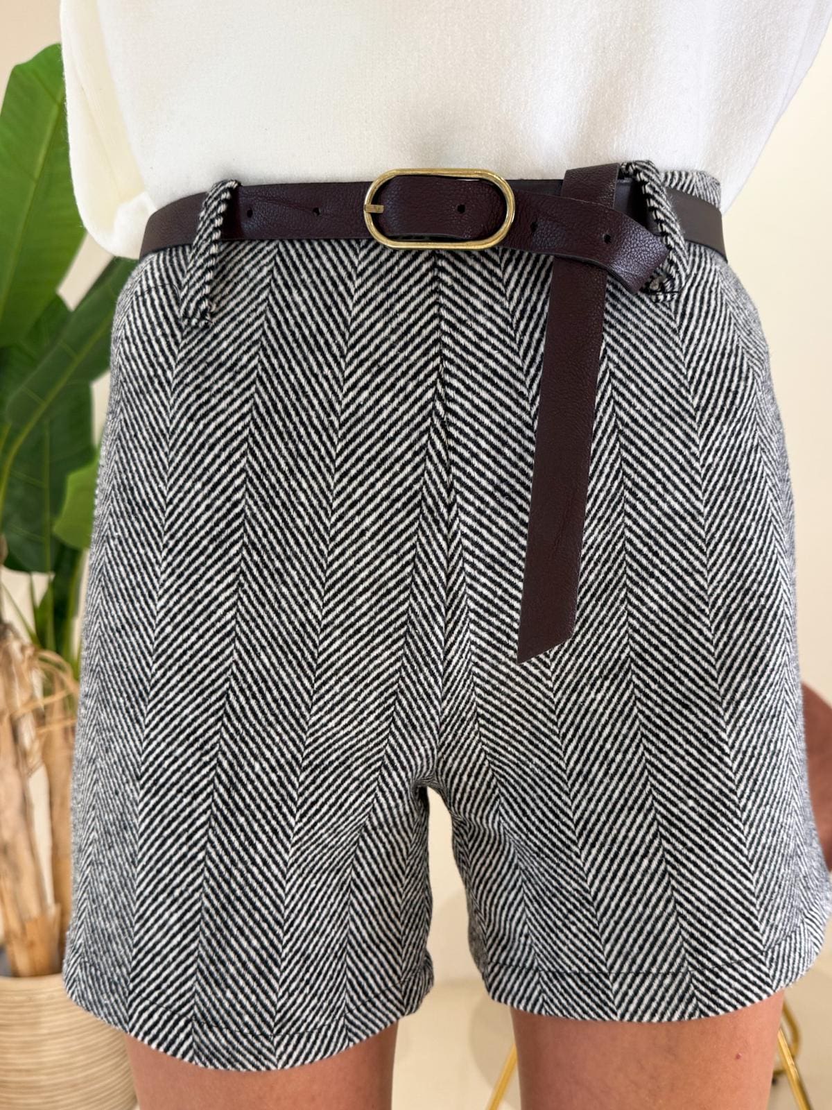 Pantaloncino spigato S M Cinta inclusa Tessuto fermo Cerniera a scomparsa laterale Sofia H 173cm indossa taglia S