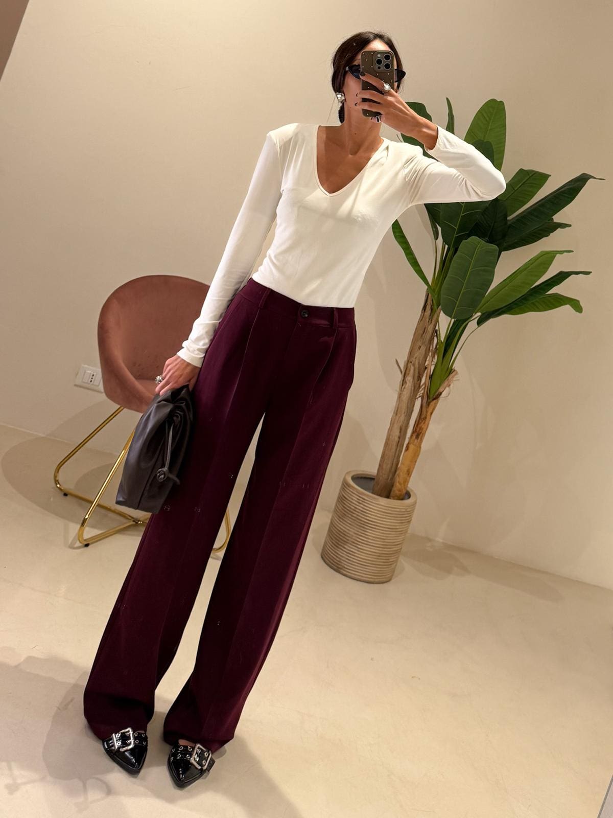 Pantalone Lucy Colori: Borgundy Nero Composizione: polyestere/viscosa/ elasthan
