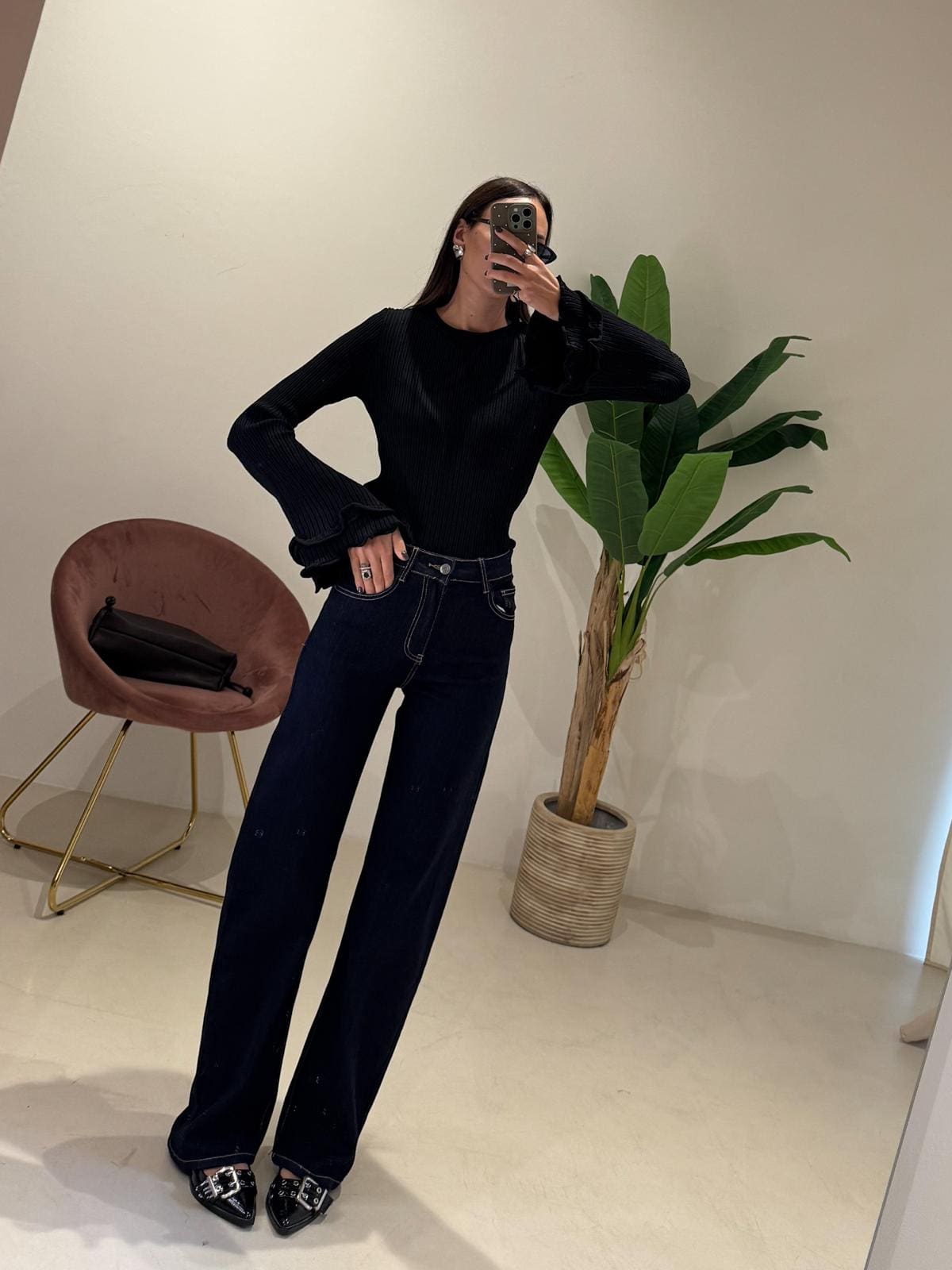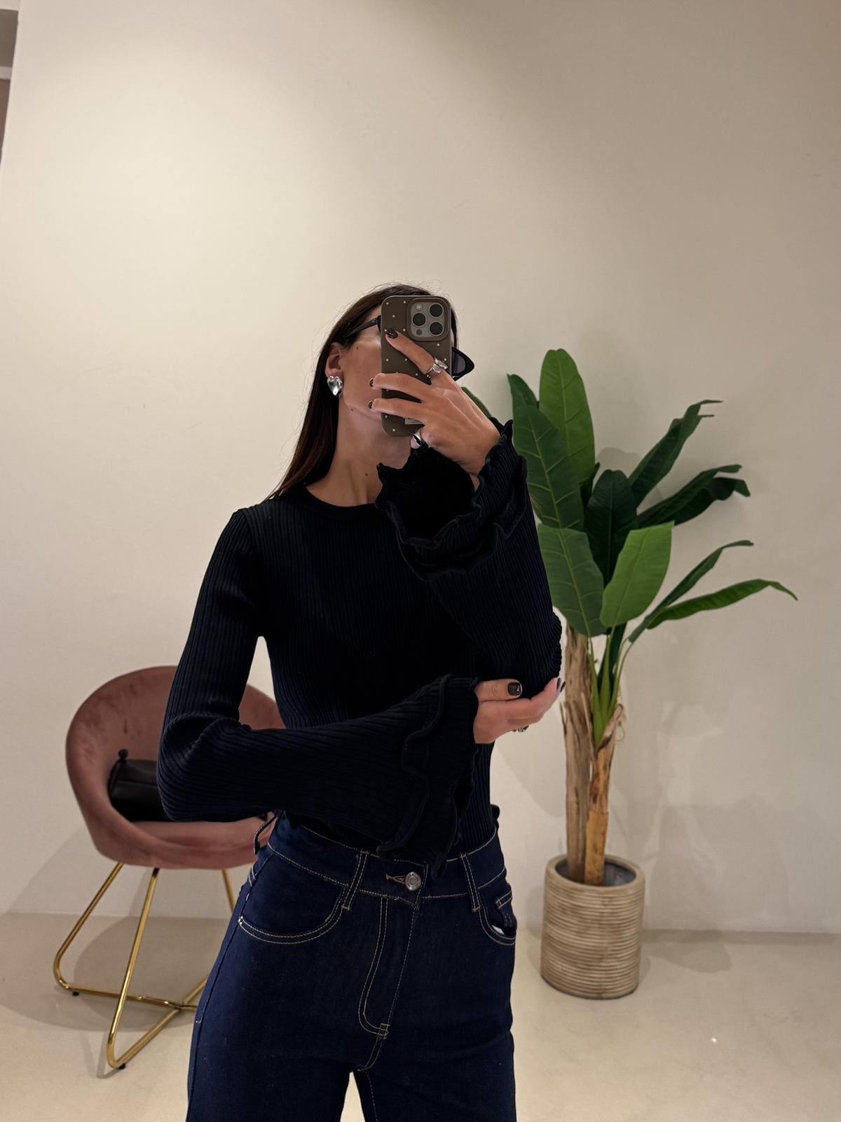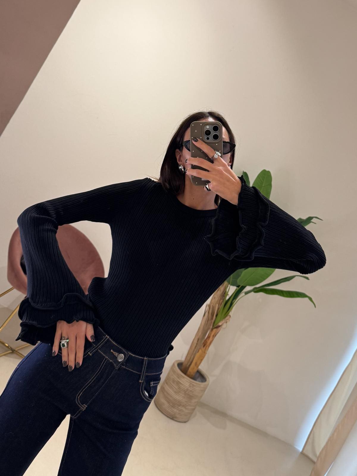 Blusa nera a costine Taglia unica Dettaglio maniche Rouches Composizione:100% viscosa