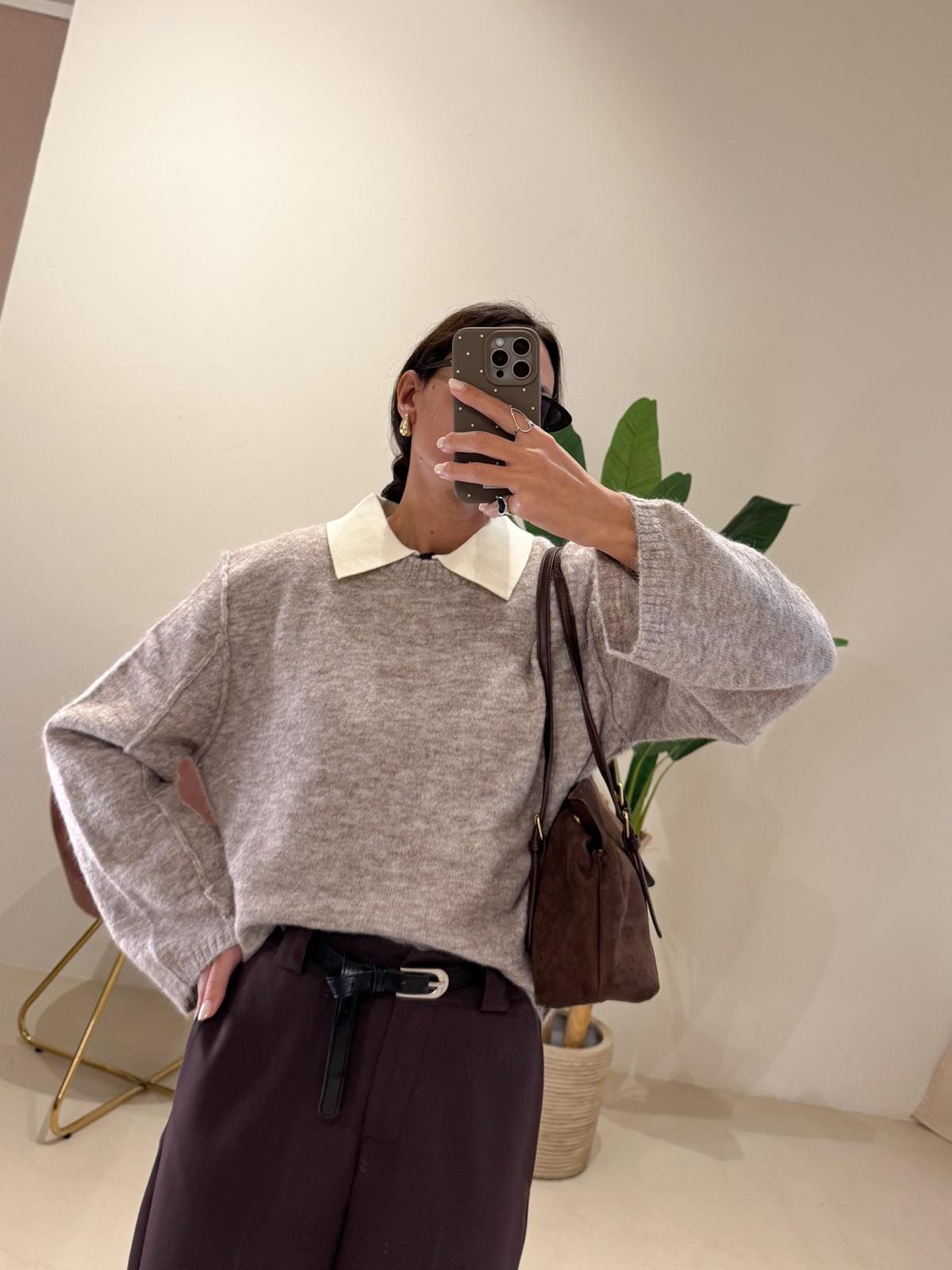 Pull base tortora o celeste Taglia unica Composizione: 3% elasthan 8% lana 20% acrilico 20% polyammide 49% polyestere